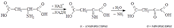 Окислительное дезаминирование идет с участием кофермента НАД+ и оксидаз – ферментов, катализирующих окислительно-восстановительные реакции.