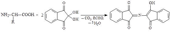a-Аминокислоты реагируют с нингидрином с образованием продукта сине-фиолетового цвета, что используется как общая качественная реакция на a-аминкислоты: