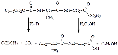 1) защитить аминогруппу аланина, превратив ее в менее реакционно- способную амидную группу действием карбобезоксихлорида: