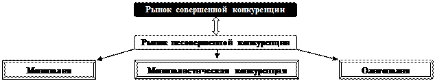 В экономике выделяют несколько типов конкурентных рынков: совершенной конкуренции и несовершенной конкуренции, к которому относят: монополию, олигополию, монополистическую конкуренцию (Рис. 6.8).