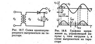 В схеме с тиристором диод открывается только при подаче управляющего импульса. Таким образом, появляется возможность автоматически регулировать средние значения тока и напряжения на нагрузке, изменяя момент подачи управляющего импульса.