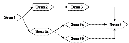 Это технология рационального разветвления деятельности (схема 34). Рациональность включается не только в разделении исследования по аспектам проблемы или функциям ее решения, но и в проведении по некоторым видам проблем одинаковых непараллельных исследований. Ведь исследование - это всегда поиск неизвестного, нового, необычного. В этом поиске возможны разные пути и стратегии, и осуществление различных стратегий позволяет найти наилучший результат.