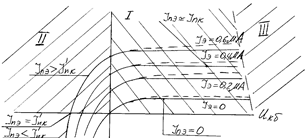 В схеме с общей базом управляющим током является ток эмиттера. Выходные коллекторные характеристики в этом случае выражаются зависимостью:
