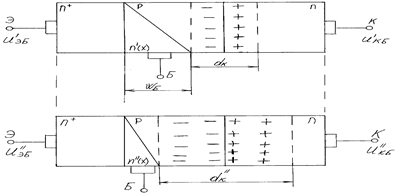 – распределение носителей заряда инжектированных в базу из эмиттера.