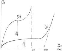 В схеме с ОЭ по сравнению со схемой с ОБ входные характеристики идут круче, ток насыщения