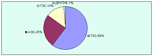Рис. 1. Доля различных типов электростанций в производстве электроэнергии в России на 2000 г.
