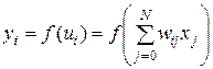 . Выходной сигнал нейрона yi определяется при этом зависимостью