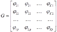 . При использовании К базисных функций и p обучающих пар реакции скрытых нейронов образуют матрицу G вида (4.15)