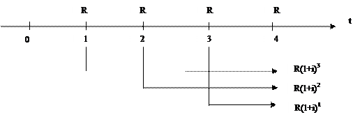 Подобным образом, на член ренты R, внесенный в конце второго года, будут начисляться проценты 2 года. К концу срока ренты эта сумма будет составлять