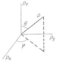 h постоянная Планка или в, данном случае, объем элементарной ячейки в фазовом пространстве в соответствии с соотношением неопределенности. Используя (1.5) в (1.4) и переходя к сферической системе координат в пространстве импульсов (см. рис. 1.3 и приведенные ниже преобразования),