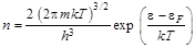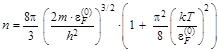 где F энергия Ферми, k константа Больцмана, Т температура электронов в градусах Кельвина. Суммируя фазовую плотность частиц по всем возможным значениям импульса (связь f с импульсом определяется посредством зависимости энергии от импульса согласно формуле (1.1)), находим концентрацию частиц n (количество частиц в единице объема)