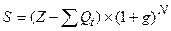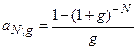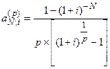 - период поставки, т.е. интервал времени от начала первой поставки до завершения поставок), при этом задолженность определяется на конец периода поставки, причём проценты на суммы поставок не начисляются, то современная величина расходов определяется по тем же, приведённым выше формулам, только во все