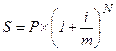 При начислении сложных процентов несколько раз в году дисконтированная сумма будет определяться по формуле: