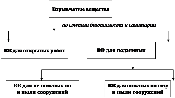 Все ВВ классифицируют: а) по области применения (рис.2); б) по химической природе (составу) (рис.3); в) по степени безопасности и санитарии (рис.1), а также по другим характеристикам.