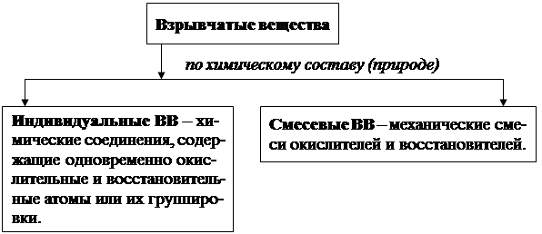 Взрывчатыми веществами (ВВ) называют химические соединения или их смеси, которые способны к быстрой химической реакции, сопровождающейся выделением большого количества тепла и образованием газов. Реакция распространяется по заряду за счет передачи энергии от слоя к слою с помощью процессов тепломассообмена (горение) либо ударной волны (детонация). Скорость горения различных ВВ изменяется в пределах 10-4-102 м/с, скорость детонации – 103-104 м/с.