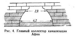 Судя по сохранившимся остаткам канализационных сооружений, главный коллектор канализации Афин представлял собой выполненный из камня канал полукруглого сечения шириной от 2,8 до 4,2 м (рис. 4).