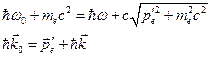 Из законов сохранения энергии и импульса получим два уравнения: