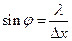 Из теории дифракции известно, что краю центрального дифракционного максимума (это первый дифракционный минимум) соответствует угол, синус которого равен: