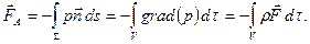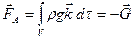 массы жидкости с распределениями плотности и давления, удовлетворяющими уравнениям равновесия. Таким образом, линия действия силы Архимеда
