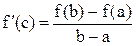Тогда внутри отрезка существует по крайней мере одна такая точка с, в кдторой производная равна частному от деления приращения функций на приращение аргумента на этом отрезке: