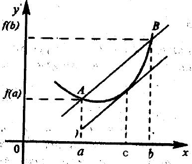 есть не что иное, как средняя скорость изменения функции на всем отрезке [а, b]. Таким образом, теорема утверждает, что внутри отрезка найдется хотя бы одна точка, в которой "мгновенная" скорость изменения функции равна средней скорости ее изменения на всем отрезке.