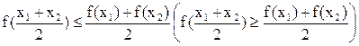 Функция у = f(х) называется выпуклой вниз (вверх)[1] на промежутке Х если для любых двух значений х1, х2 Î Х из этого промежутка выполняется неравенство