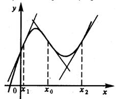 рисунке 3.9. В окрестности точки х1 функция выпукла вверх, и график ее лежит ниже касательной, проведенной в этой точке. В окрестности точки х2 функция выпукла вниз, и график лежит выше касательной. В точке же перегиба х0 график лежит по разные стороны касательной.