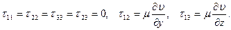 Зная компоненты тензора скоростей деформаций, на основе закона Навье – Стокса