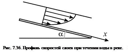к горизонту, то получится картина течения воды в реке под действием силы тяжести (см. рис. 7.36). При расчете профиля скоростей течения вместо градиента давления