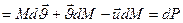 dM<0 (2) следовательно мы имеем: dM+dm=0 (3)- закон сохранения массы. Импульс системы в момент времени t: