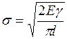 Для расширения трещины нужно затратить некоторую работу на преодоление сил взаимодействия соседних слоев. Обозначим через γ работу, необходимую для образования единицы новой поверхности. Тогда поверхностная энергия рассматриваемой пластины, обусловленная образованием трещины: