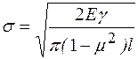Формулы (2.7), (2.8) определяют критическое напряжение, при котором происходит самопроизвольный, без дополнительной работы внешних сил, рост имеющейся в теле трещины длиной 2 l.