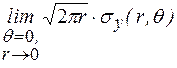 У вершины трещины, при x →0, r →0, напряжения неограниченно возрастают по величине. Подставляя эти значения в (2.14) и вычисляя предел, находим: