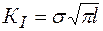 По определению коэффициент интенсивности напряжений около вершины трещины при плоской деформации: