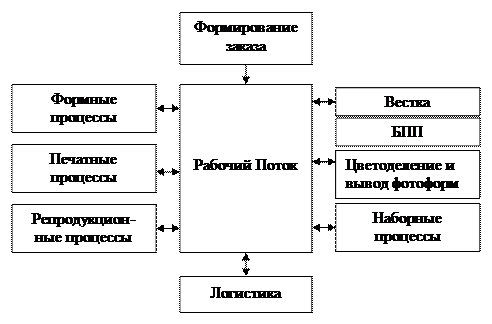 Концепция рабочего потока подразумевает организацию прохождения материалов, цифровых данных и другой информации о работе, начиная от этапа приема заказа через допечатные, печатные, послепечатные процессы до распространения готовой продукции. «Рабочий Поток» объединяет в единое целое материальный поток, связанный с непосредственным материальным воплощением издательской и печатной продукции, и информационный поток, обеспечивающий это воплощение. Помимо этого «Рабочий Поток» позволяет оптимально организовать рабочий процесс с точки зрения имеющихся ресурсов, правильно спроектировать и скомплектовать типографию под имеющиеся задачи, оптимизировать информационные потоки на предприятии.