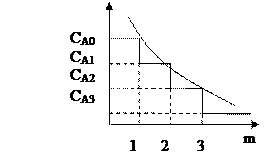 В РИС-Н не достигается высокой степени превращения, т.к. концентрация исходных реагентов мгновенно снижается до конечного значения и весь процесс протекает при низкой концентрации, следовательно, при низких скоростях. Для устранения этого недостатка применяют каскад ректоров соединенных между собой по следующей схеме.