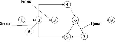 4. В сетевом графике не должно быть «тупиков», «хвостов» и циклов.