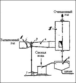 Рис. 14. Схема установки скруббера Вентури для мокрого пылеулавливания.