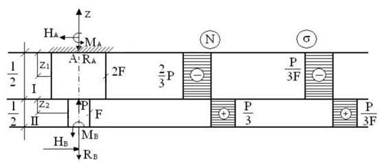 2 неизвестных – 1 уравнение равновесия = 1 раз статической неопределимой системы.