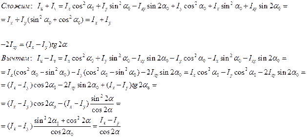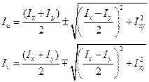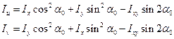 Получаемые отсюда два значения, α отличаются на 90 и определяют положения главных центральных осей.