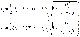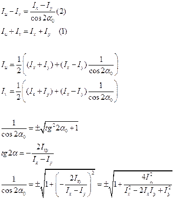Т.к. оси U и V – главное и центробежные моменты U и V = 0, то