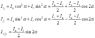 Наиболее практический интерес представляет собой главные центральные оси относительно которых центральный момент инерции равен 0.