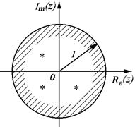 Таким образом, единичная окружность в плоскости корней zk является границей устойчивости , следовательно, играет такую же роль, как и мнимая ось в плоскости корней