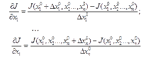 1. Делается пробный шаг по каждому из параметров xi=x0i+Dx;