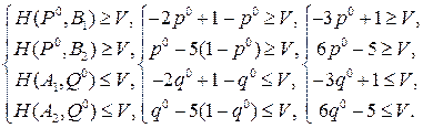 - оптимальные стратегии игроков и V - цена игры с матрицей (9.13). Тогда по необходимым условиям оптимальности стратегий, сформулированным в теореме 9.2, имеем: