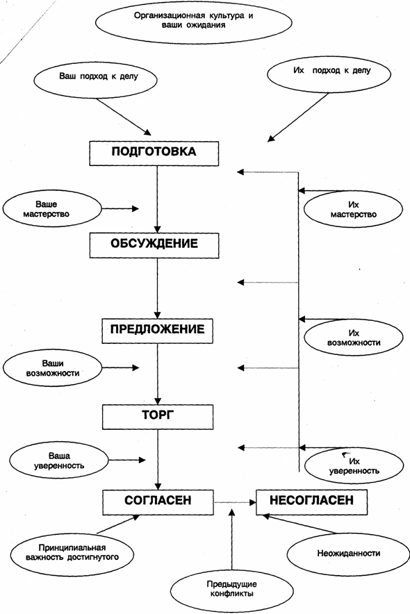 В процессе переговоров можно выделить три основные стадии: подготовку к переговорам; процесс их ведения; анализ результатов и выполнения достигнутых договоренностей.