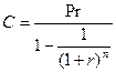 Формулу приведённой стоимости аннуитета также можно использовать в случае, когда заёмщик берёт кредит на условиях его погашения в будущем равными платежами ежегодно.
