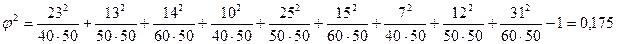 На основе критерия «хи-квадрат» определяются показатели степени тесноты связи — коэффициенты взаимной сопряженности К. Пирсона и А. Чупрова. Коэффициент взаимной сопряженности К, Пирсона рассчитывается по формуле: