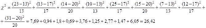 Где fэ и fТ соответствующие эмпирические и теоретические частоты. К – число групп