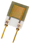 Измерить относительную влажность воздуха в хлебопекарной печи при температурах до 200°С можно с помощью влагомеров с влагочувствительными элементами немецкой фирмы MELA. Эти элементы используются для измерения относительной влажности воздуха и других неагрессивных газов. Их работа основана на емкостном принципе измерения. Элемент представляет собой систему электродов и влагочувствительного полимерного слоя на керамическом субстрате. Система образует влагозависимый конденсатор, емкость которого зависит от относительной влажности окружающего воздуха. (Рисунок 2.53). Разные типы влагочувствительных элементов отличаются степенью устойчивости к внешним воздействиям и емкостью.